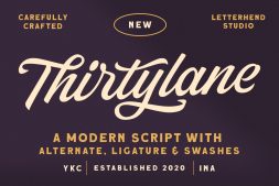 Introducing, Thirtylane - a bold script which is purposely made for logotype. This type of font perfectly made to be applied especially in logo, and the other various formal forms...